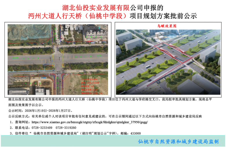 批前公示!仙桃将新建一座人行天桥