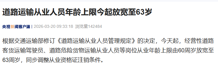 仙桃已实施,从业资格放宽至63岁